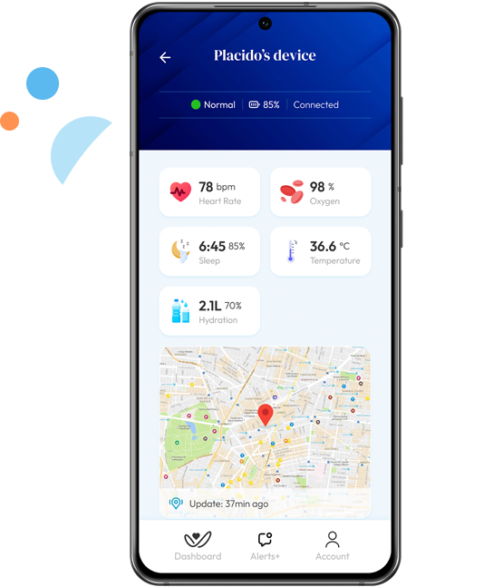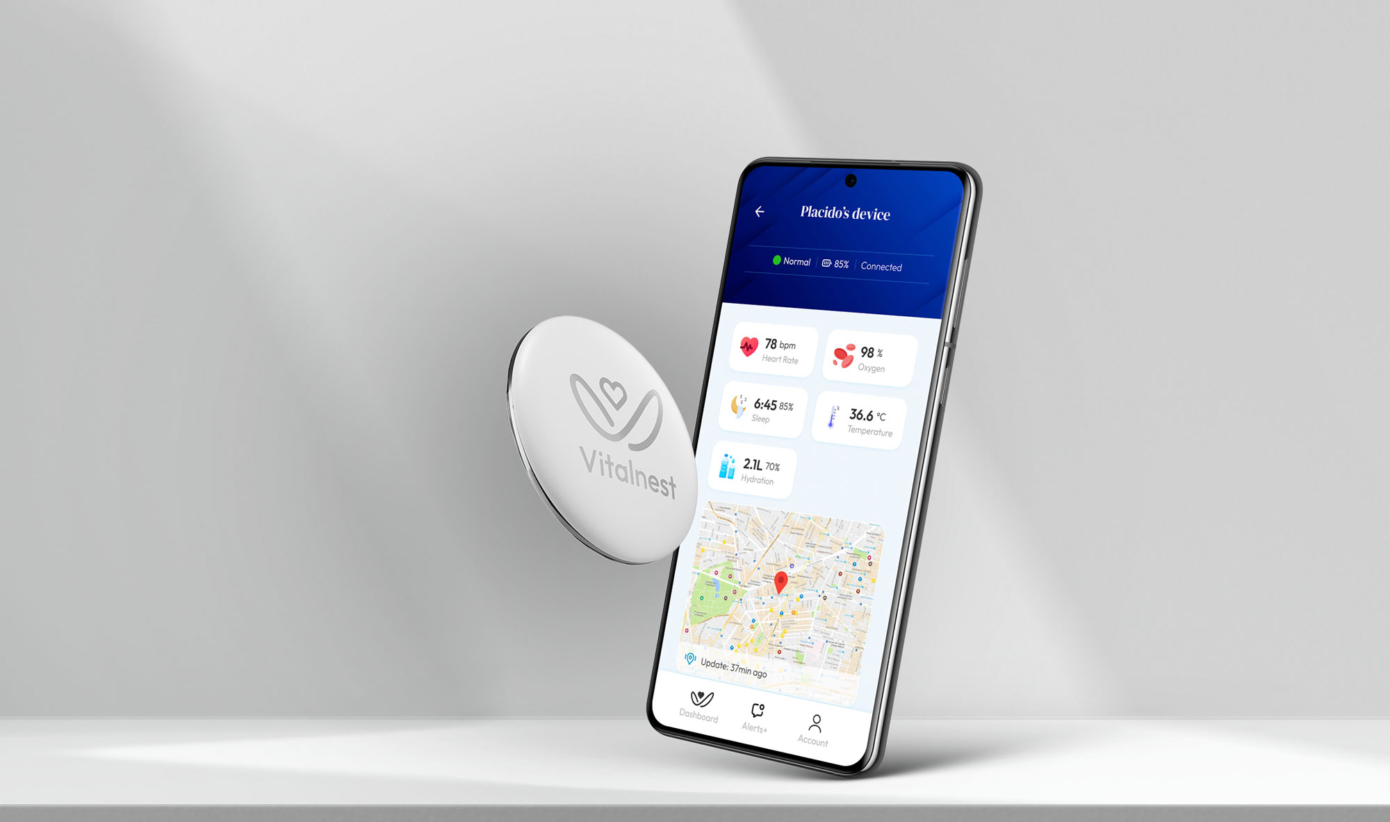 The VitalNest mobile app gives you a live snapshot of your health and wellbeing, updated automatically from the wearable device. Whether you’re a user or caregiver, you’ll have instant access to: